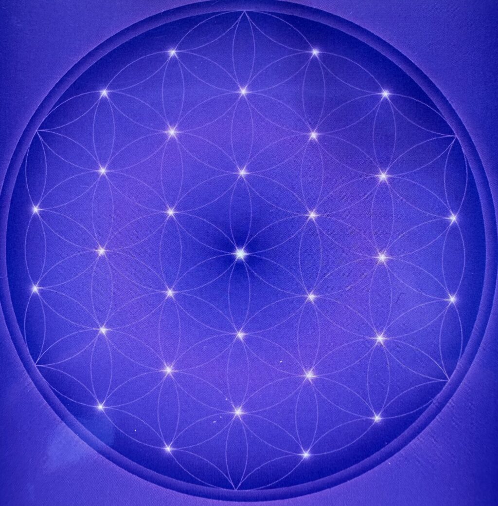 The Flower of Life is a complex geometric pattern of overlapping circles arranged in a hexagonal, flower-like structure. The pattern is recognised by many cultures all over the planet. This incredible pattern is created by overlapping circles intersecting at the middle of each circle, creating an image of a perfectly proportioned flower. The shape acts as the building block for the architecture of all living things, starting with the very first circle, with the source of consciousness arising from one source (the first circle).