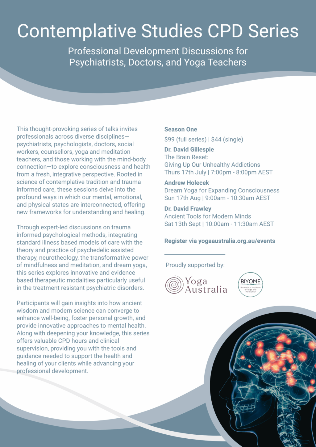 We warmly invite you to attend our upcoming Continuing Professional Development (CPD) Series, a powerful collection of live online sessions designed to support yoga teachers, therapists, and wellness professionals in their ongoing education and inner work.